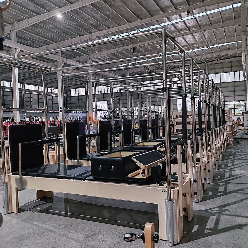 De Maple 3 in1 Cadillac Pilates Reformer levert een complete Pilates-trainingsoplossing door een reformer, Cadillac en torensysteem te integreren in één krachtige eenheid. Deze Maple 3-in-1 Cadillac Pilates Reformer is gemaakt van massief esdoornhout en biedt uitzonderlijke duurzaamheid, een elegant ontwerp en betrouwbare ondersteuning voor studio's, fysiotherapiecentra, sportscholen en thuisbeoefenaars.