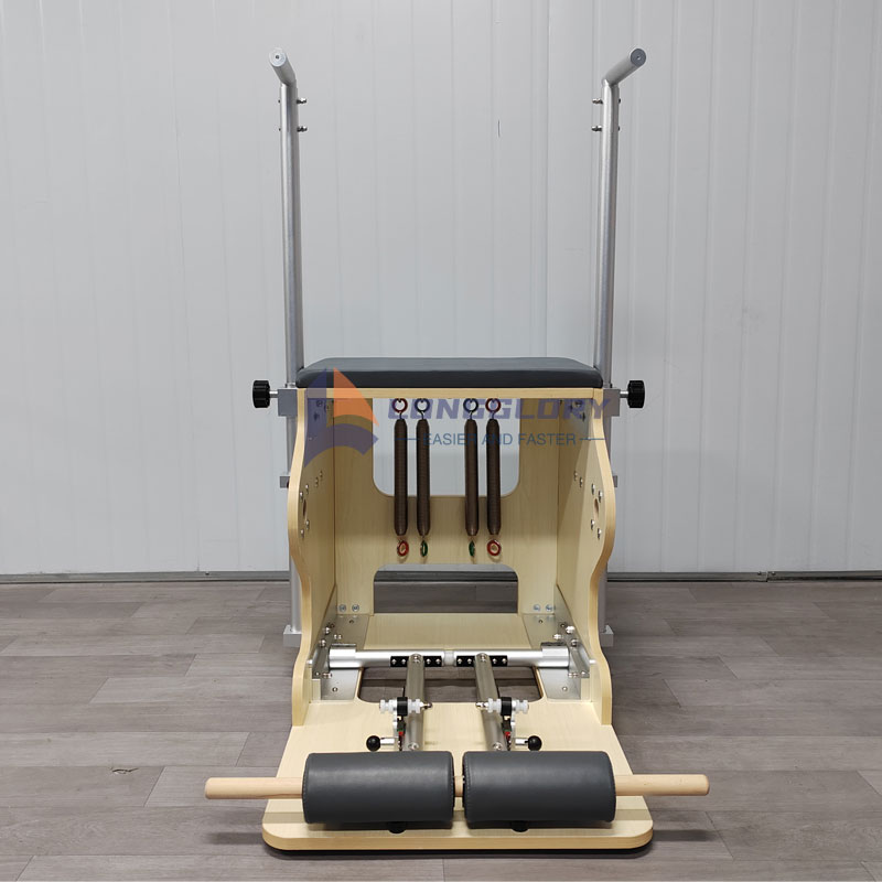 3. Pilates-stoel: Design Essence: integreert een pedaal, verstelbare veren, antisliphandgrepen en een comfortabele stoel, met een slim ontwerp dat functionaliteit en draagbaarheid in evenwicht brengt. Trainingsfocus: Benadrukt het versterken van de unilaterale ledemaatcoördinatie en het dynamische evenwicht, het nauwkeurig vormgeven van heup- en beenlijnen en het diep activeren van de kernspieren. Hoogtepunten van gebruik: Compact en ruimtebesparend, vooral geschikt voor thuisgebruik; flexibel instelbare weerstand past zich aan verschillende trainingsfasen aan. Klassieke bewegingen: Step-up press (luchtkussen) en balanstraining met één been verbeteren de kracht van de onderste ledematen en de balanscontrole.