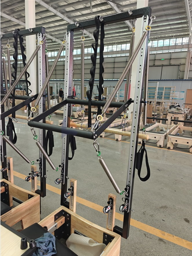 De eiken hervormer met toren is een multifunctionele Pilates -machine die een traditionele hervormer en een volledig geïntegreerd torensysteem samenbrengt. De eiken hervormer met toren is vervaardigd van hoogwaardig eikenhout en biedt een stabiele, stijlvolle en langdurige structuur die elke Pilates-studio- of thuistrainingomgeving verhoogt. Met verstelbare weerstand, gladde koetsbeweging en een veelzijdige torenbevestiging ondersteunt deze apparatuur een breed scala aan Pilates -oefeningen, waaronder krachttraining, stretchen en revalidatie. Perfect voor Pilates-instructeurs, fitnessprofessionals en enthousiastelingen, de Oak Reformer met toren levert professionele prestaties, waardoor gebruikers de houding, kernstabiliteit, balans en algehele lichaamssterkte kunnen verbeteren.